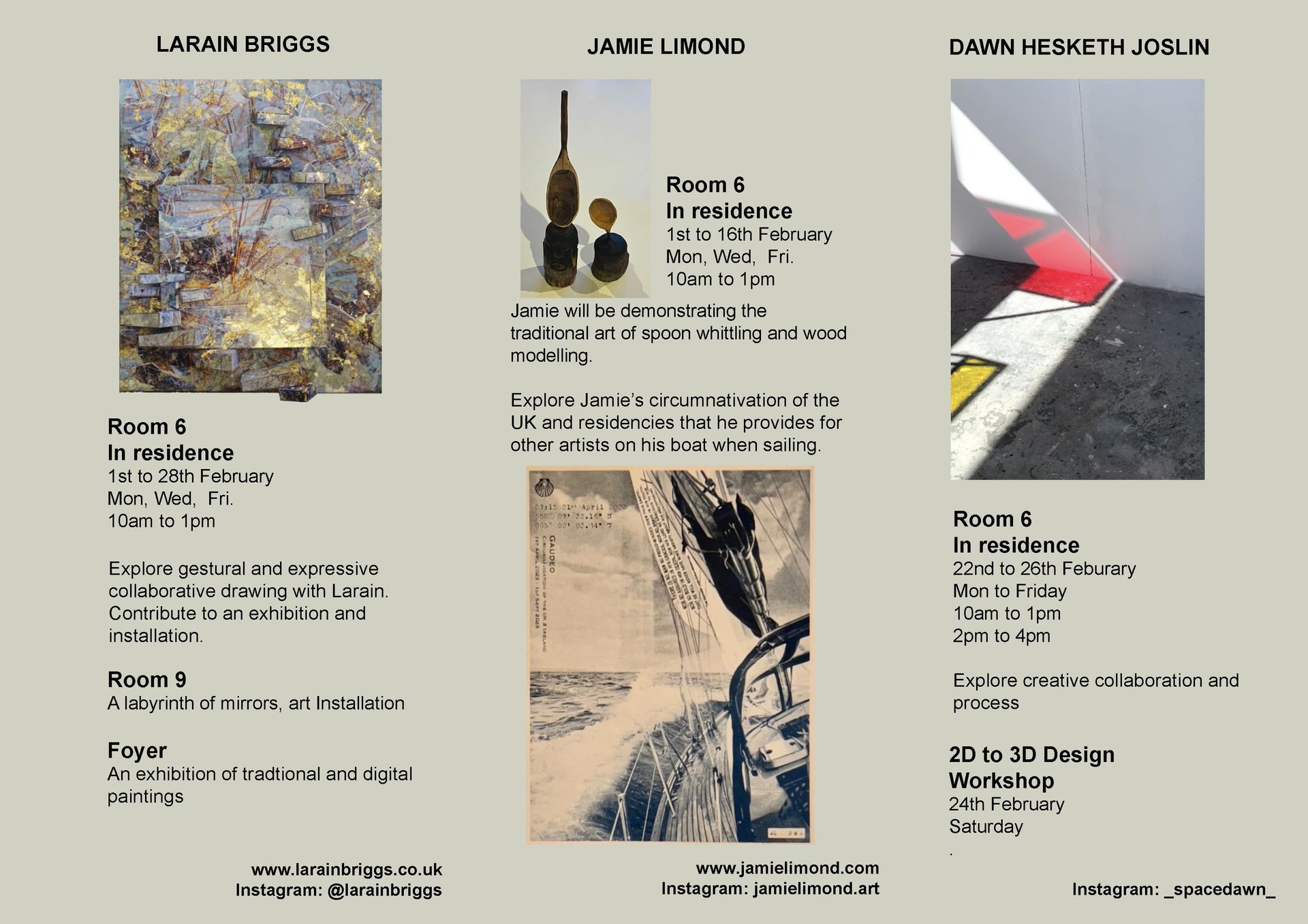 Participating artist's: Larain Briggs, Jamie Limond, Jane Frederick, Clare Iles.