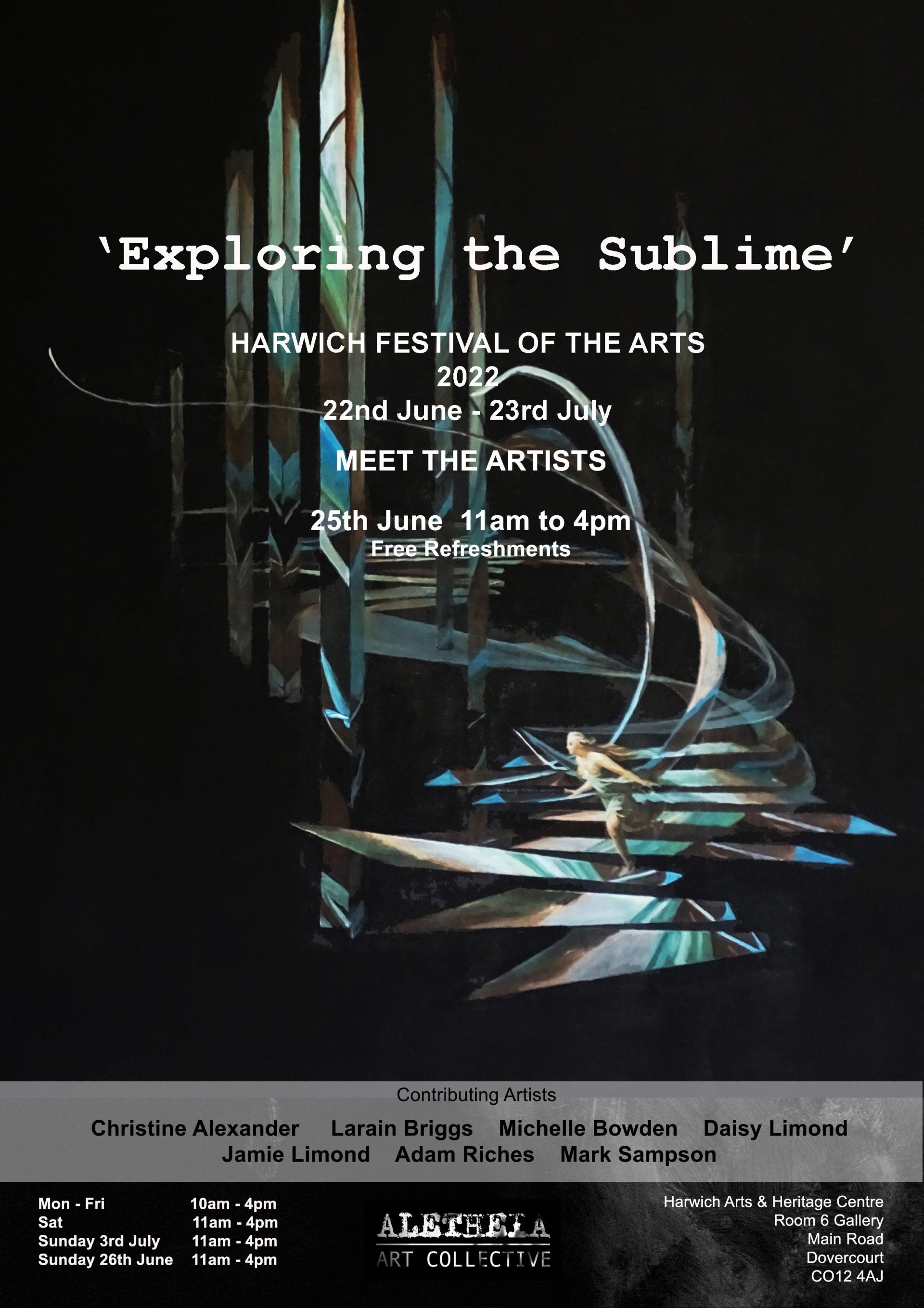 The Aletheia Art Collective are artists who live and work in Suffolk and Essex. This year, they have contributed and collaborated on a multi-disciplinary exhibition exploring the philosophical concept of the sublime for the Harwich Festival of the Arts.